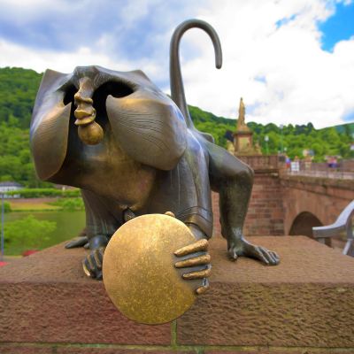 海德堡老桥铜猴内卡河圣灵大教堂粮食广场海德堡城堡哲学家小径王座山海德堡步行街海德堡老城区
