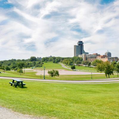 星形碉堡右边有一片广大的丘陵,这里就是战场公园。1759年英、法两军在此发生一场具有决定性的战争,法军在这场战役中打了败仗,从此魁北克市成为英国的殖民地。如今古战场成为了城市公园,是当地人户外野餐的好地方。