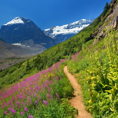 冰原大道被视为北美地区优美的公路之一,从贾斯珀国家公园至班夫国家公园,绵延229公里,沿途可看到瀑布、翡翠湖、草原和白雪覆顶的山峰的景致变化,美丽如一幅画卷。沿途可在佩投湖、赫克特湖或弓湖边停靠,你肯定会为冰河泥沉积所致的奇幻水色而赞叹不已。