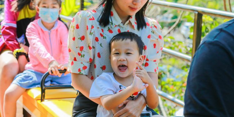 坐上空中小火车,一家人感受秋天的浪漫