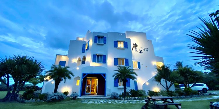 花蓮豐濱鄉海邊的一座擁有希臘地中海風情的 【崖上民宿】海風 白屋 藍窗 鐘塔