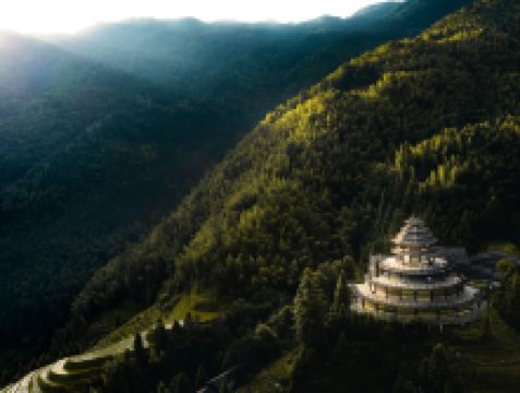 广西桂林龙脊金坑红瑶梯田最佳观赏地,阿卡迪亚全景酒店,仿佛置身天宫中!