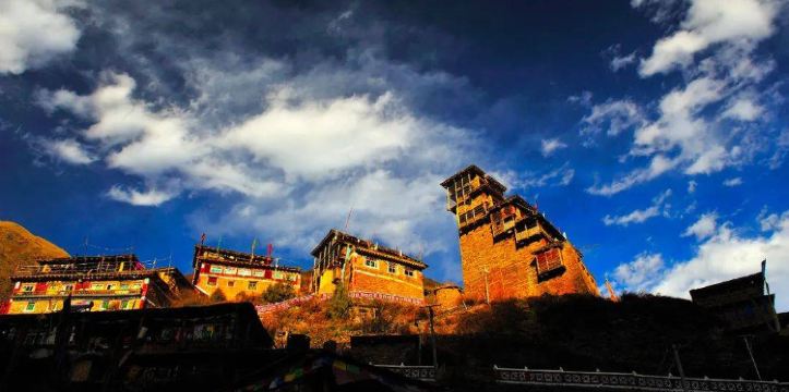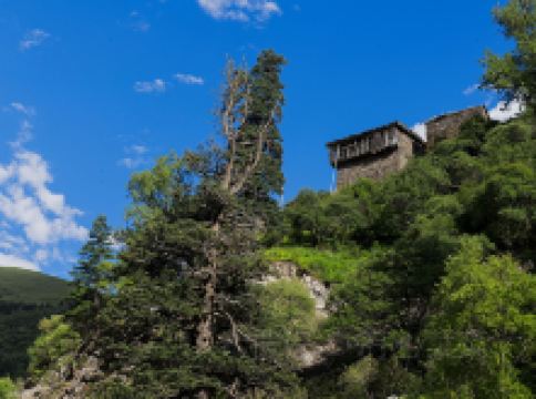 这个藏寨里的房屋建在百多丈高的悬崖之上,两百年至今有人居住