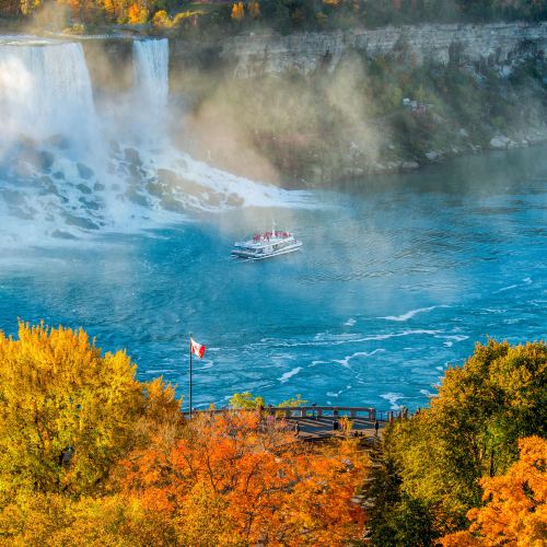 行程:史凯龙塔 - 霍斯舒瀑布 - Journey Behind the Falls - 彩虹桥 - 尼亚加拉湖滨小镇 - 尼亚加拉瀑布直升机