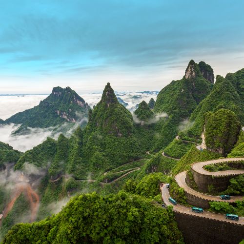 行程:天门山国家森林公园 - 张家界七十二奇楼 - 百龙天梯 - 袁家界景区 - 天子山风景区 - 张家界《魅力湘西》演出 - 十里画廊 - 张家界大峡谷