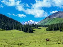 行程:草原石人风景区 - 夏塔旅游区 - 阔克苏大峡谷 - 喀拉峻景区 - 那拉提旅游风景区 - 那拉提国家森林公园 - 果子沟大桥 - 赛里木湖 - 霍尔果斯国门景区