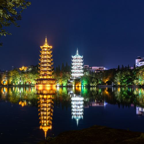 行程:日月双塔文化公园 - 独秀峰王城景区 - 芦笛岩 - 象鼻山景区 - 叠彩山 - 七星景区 - 漓江三星游船 - 遇龙河竹筏漂游 - 阳朔如意峰索道景区 - 银子岩