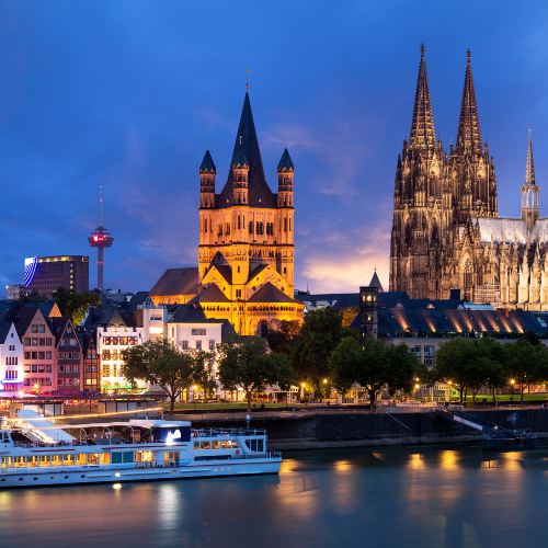 行程:大圣玛尔定教堂 - 科隆市政厅 - 科隆大教堂珍宝馆 - 路德维希博物馆 - 霍亨索伦桥 - 科隆巧克力博物馆 - 莱茵河畔老街 - 花宫娜香水博物馆 - 罗马-日耳曼博物馆 - 科隆动物园 - 科隆植物园 - 科隆大教堂