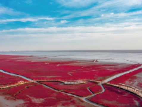 你见过红色的海洋?来辽宁红海滩吧,适合带爸妈游玩的地方。