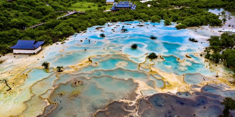 斑斓彩池镶嵌高原的圣地仙境,山水黄龙被誉为人间瑶池