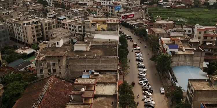 合浦山口镇街上停车的位置很特别,居然停在路中间