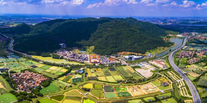 航拍西樵山下的桑基鱼塘,五颜六色如盐田,这才是真正的岭南水乡