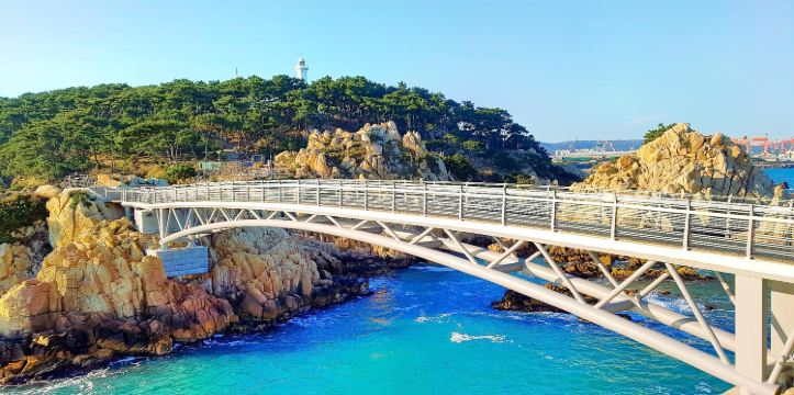 蔚山一日游,欣赏(1)艮绝岬——韩半岛太阳最先升起的地方;(2)大王岩公园美丽景色:松林,海上吊桥,海