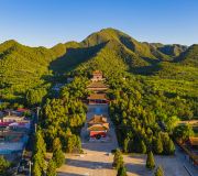 明十三陵,位于北京市昌平区境内天寿山南麓,自永乐七年(公元1409年)五月始作长陵,到明朝最后一帝崇祯藏入思陵止,其间230多年,这里先后修建了13座金壁辉煌的帝王陵墓、7座妃子墓、1座太监墓。共埋葬了13位皇帝、23位皇后、2位太子、30余名妃嫔、1位太监,是当今世界上保存完整、埋藏皇帝最多的墓葬群。明十三陵建筑雄伟,体系完整,历史悠久,具有较高的历史和文物价值。
