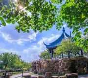 蠡湖风景区,原名五里湖,是太湖东北处的一个内湖,伸入蠡湖风景区的蠡园是无锡的老牌公园,具有江南园林风格,以水景见长,细细窄窄的长提、小桥、长廊架于水上,到了3、4月份桃花盛开,6-9月荷花盛开,宛如一座水上花园。