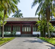 东坡书院简介: 东坡书院原名载酒堂,位于儋州市中和镇东郊,系北宋大文豪苏东坡居儋三年期间讲学会友的场所。载酒堂原址为当地人士黎子云的宅地。东坡一日与昌化军(即儋州)使张中同访黎子云,与当地人士相聚一起。众人提议,为方便东坡讲学会友,开化地方,请在黎子云处建一讲堂。东坡欣然赞许,并为起名曰“载酒堂”,取《汉书·杨雄传赞》“载酒肴,从游学”之义。据元代儋州主簿徐智《载酒堂记》,载酒堂始建于北宋绍圣五年(1098年),也就是东坡于绍圣四年7月到儋半年多之后。 自北宋绍圣四年(1097年)7月,苏东坡从惠州被贬至儋州之后,至元符三年(1100年)6月,苏东坡始遇赦北归。 苏东坡居儋整三年,期间,一代文宗躬耕自处,苦心劝农,移风易俗,敷扬文教,著书立说,为世人所敬仰。当时,在东坡精神的感召下,儋州直至整个海南读书学文化的风气逐渐养成。接受过他教化的琼州士人姜唐佐在他北归后的第二年即成为海南第一位举人,而在他北归后的第九年,昌化军(儋州)人符确考中进士,从此海南“大破天荒”,结束了没有进士的历史,成了海南第一位进士。所以海南有史以来,均把苏东坡作为海南文化开发启蒙的重要功臣,而他对于儋州文化的启迪之功,更为世代所传颂。“琼之有士始乎儋,琼之士亦莫盛乎儋”,这正是苏东坡对于儋州文化开发的不朽之功。今天,东坡书院已经成为各方人士以及儋州人民世代瞻仰的文化圣地。东坡书院也于1996年被授予重点文物保护单位,为海南重要的人文旅游胜迹之一。 东坡书院自北宋年间建成后,历南宋至元初,堂久废,无重修记录。元代泰定五年春(1328年)儋州倅彭应雷即旧址重修建成。其后,明、清两代直至民国初,多次重修、增设、改建。嘉靖二十七年(1548年),更名为“东坡书院”。自1950年,海南解放以来,东坡书院在历届党政领导的关怀下,历经管理维修,得到有效保护。1982年又进行了大规模维修改建,面貌焕然一新。尤其在海南国际旅游岛建设规划的驱动下,作为文保单位,东坡书院的建设更成为儋州市旅游重点项目之一,近年得到更大的发展。2012年至2014年儋州市人民政府对书院进行大规模维修,包括大殿、载酒堂、两庑廊、耳房、载酒亭、头门、莲池、护栏、钦帅堂等。2014年增设了服务接待中心(先已更改为东坡香文化馆)、按星级标准完善了相关的旅游服务设施。 东坡书院经过历代维修和扩建,形成了现有面积25040平方米的建设规模。书院内设头门、载酒亭、载酒堂、大殿、耳房、东西两庑廊、陈列馆、钦帅堂、怀贤亭、接待服务中心、望京阁、东坡私塾等仿古建筑。院内还有东坡笠屐铜像和坐立铜像、春牛雕塑、狗仔花、钦帅泉井、假山等景点。院内草木扶疏,鲜花掩映,书画琳琅,古色古香,具有浓郁的“东坡遗风”。 东坡书院藏品丰富,现有名家字画400多幅,历代楹联13幅,名匾10块,历代碑刻13通,明代陶器罐1个,元代石雕人1尊。此外,还有古典和近代图书资料等。东坡书院内设固定展览:东坡生平事迹展(陈列馆);东坡史料展(大殿);历代碑和木刻展(载酒堂)。临时展览:国内外领导、专家学者关怀图片展(东庑廊)及东坡墨迹展。 东坡书院众多的展品、舒适的环境、浓厚的文化氛围、丰富优美的歌舞表演是游览观光的理想场所。 东坡书院历史沿革: 东坡书院是北宋大文豪苏东坡贬居儋州时讲学和会友的场所。位于海南省儋州市中和镇东郊,距洋浦港18公里。 东坡书院历经沧桑,几经风雨,在历朝历代反复维修、扩建和保护下,形成当今规模。现将其历史沿革概述如下: 东坡书院原名东坡书院,始建于北宋元符元年(公里1098年)。初为茅屋。 元泰定三年(公元1326年)于东坡书院后侧增建东坡祠,并从桄榔庵遗址移坡公像入祠中祀奉;泰定四年(公元1327年)军判彭应雷探寻旧址,拓基重建酒堂,仍为茅屋。 明代多次维修。永东七年(公元1409年)易茅屋为瓦屋,且于正德年间(公里1506——1521年)定编一门子奉祠事,万历二十三年(公元1595年)增建载酒亭,钦帅堂,钦帅泉并添置钦帅泉碑刻。 清代亦多有维修。且于光绪十九年(1893年)增建头门、庑廊、耳房。 民国二十三年(公元1934年)再度重修,并新建东坡公园及东坡公路(当时的东坡公路为土路)。 因明代嘉靖年间(公元1522——1566年)开始有学者在东坡书院设帐讲学,弘扬东坡遗风。故有“东坡书院”之称。 全国解放以后,人民政府曾多次拨款修缮.虽然“文革”期间又被“摧残殆尽”,但一九八三年至一九九六政府连拨巨款分别重修了载酒亭、畔池、大殿、东坡书院、头门、东西两廊、耳房、钦帅泉、书院围墙,完善了东、西园林化建设,立了东坡笠屐铜像,建陈列馆、迎宾堂、望京阁、钦帅堂等。1984成立了专职文物保护机构——东坡书院管理处。负责东坡文化史迹的保护管理和科学研究工作。 1996年11月20日,公布东坡书院为全国第四批重点文物保护单位。东坡书院规模:东坡书院现围墙内面积25040平方米,围墙外头门前面的东坡广场面积10.6亩。