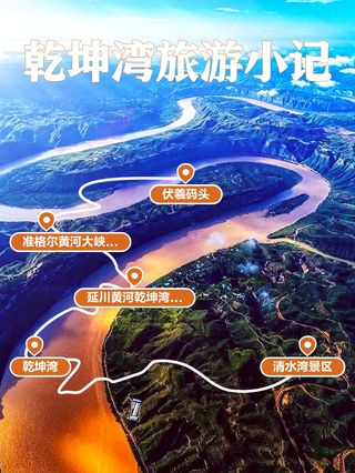 九曲黄河,裂地而来,在秦晋峡谷延川段蜿蜒曲折,形成了闻名遐迩的世界地质奇观——黄河蛇曲地貌群,被国土资源部命名为“黄河蛇曲国家地址公园”。其中,以乾坤湾、清水湾为主体打造的延川黄河乾坤湾景区,是黄河蛇曲国家地质公园的核心片区。延川黄河乾坤湾景区距西安市396公里、距延安市79公里。陕西沿黄观光路穿境而过,榆商高速,包茂高速、延西高速、延延高速,均可直达乾坤湾高速出口。景区内精华景点:乾坤湾,是黄河流转之间形成的一个“S”型大转弯,弯度达320度,相传中华人文始祖伏羲氏,曾在乾坤湾仰观天象,俯察地理,萌发灵感始创八卦,从此开启了人类华夏文明的先河;清水湾,是陕北现存完整的黄河码头体系,拥有古街、衙门、民宿等,可以体验黄河垂钓、羊皮筏子漂流,品尝黄河鲤鱼等等;会峰寨,巍峨险峻,是具代表性的黄河河防工事,山环水抱,固若金汤。除此之外,景区内:定情岛、牛尾寨、黄河栈道、沿黄古道、伏母寨、女娲祈福、伏羲观天等景观,景点更是钟灵毓秀,各具特色。在这里,奔放的秧歌、淳朴的道情、动情的说书、火红的剪纸、五彩的布堆画讲述延川人的黄河故事;九曲黄河阵、乾坤大舞台、羊皮筏子漂流展现延川人的黄河情怀;“华胥履迹生伏羲,伏羲观天地创八卦”等民间传说更增添了延川黄河的传奇色彩。