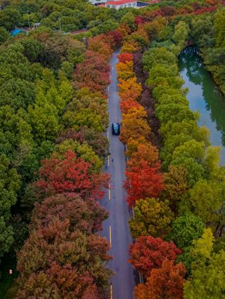 拂水堤位于尚湖中央,南北走向穿尚湖而过,长约1.4公里,把湖分成了东西两块,北面的虞山与两侧的湖水相互辉映,堤中央的十七孔串月桥好似水面一串珍珠。拂水堤两边栽满绿树,春天来这条“绿色大道”踏青、散步较合适,也很适合骑行,大堤中间高,两头低,骑行还能锻炼身体。因为这同时也是一条通车的公路,有公交车、自驾车等在上面开,虽然车不是很多,但无论步行或骑行,还是要注意安全。