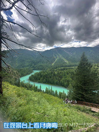 月亮湾是喀纳斯河的一个河湾,位置在卧龙湾以上。由于湖底高差和上游来水量的变化及光线影响,其呈现出瑰丽而多变的色彩。月亮湾夹在东西两山之间,河道随山势迂回,形如一弯新月,故名月亮湾。