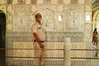 风之宫兴建于1799年,位于斋浦尔商业中心的主干道上,它原本是城市宫殿的一部分,延伸到妃嫔所在的后宫,如今是斋浦尔的一个标志性建筑。风之宫独特的五层楼外观就像一面巨大的粉红色的“墙”,上面密密麻麻布满了953扇蜂窝状的窗户,用红砂石镂空制成。每到清晨日出时,金色光芒中的风之宫显得特别壮观,而在夜晚明月照耀下又别有一翻韵味。如此设计的初衷是为了既能让妃嫔们观看下面的街道,又不被外面的人看见,因为她们须严格遵守蒙面的规定。这样的结构也使得宫殿内任何地方有风吹入,即便遇到狂风天气,只要把窗户打开,大风就会吹过前后窗,而不会把建筑吹倒,因此得名“风之宫”。