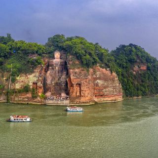 海师洞位于大佛头部左后方的凌云山顶,相传为海通居住过的地方。海师洞洞深约10米,洞额刻“海师洞”三字,为清乾隆时四川按察使顾光旭手书。洞前的《凌云山海师洞记》碑文则是当年顾光旭所拟,而由后人重刻的。洞前铜钟为明代旧物,洞外的海通法师坐像则为近年所塑。