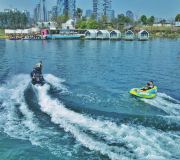 黄龙溪欢乐田园有近万平米的龙溪谷大型野趣戏水区,集游乐戏水、网红项目、悠闲娱乐、沉浸体验为一体,涵盖紫薇叠溪、榕树池、水杉林、桃花潭四大主题戏水区域,这里是蓉城市民的消夏圣地、玩水天堂。在稻田戏水区,奶瓶喂鱼不但体验性十足,更兼具趣味性与观赏性。