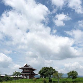 日本平城京即今天的奈良,是日本仿造唐长安建造的第一个都城。日本天皇将都城平城宫的正门命名为朱雀门,是古时外来使者、官员出入都城的入口。日本近代动用了极大的人力物力对其进行复原,花了11年的时间,直至2004年才修复完工。如今,朱雀门和大极殿一起,都是平城宫遗址内主要参观的建筑。