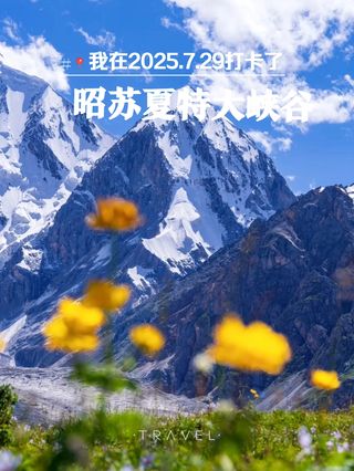 夏特大峡谷风景区距昭苏县城75公里,途中须要穿越夏塔古道,由于它们都坐落在优美的夏台草原之上,因此我们称他为夏台、夏特,蒙古族则习惯的称它为“沙图阿满”也就是夏塔音译,翻译过来也就是台阶和阶梯之意。夏塔古道在清代的时候达到了利用的黄金时期,尤其是平定准葛尔叛乱以后,同南疆之间的官兵换防、物资交换也日趋的频繁起来。为此乾隆皇帝还派了120户达巴奇常驻附近,每天以20人凿冰梯,目的就是如有不测大兵即可翻越天山到达伊犁,至今我们仍然可以看到在冰达坂处确凿冰梯的痕迹。夏塔温泉每年六月中旬才开始涌水,11月中旬就已经干枯。据1993年9月中旬测量,每处泉水温度都不同,较高温度是45度,经测量此温泉水达到了饮用矿泉水的标准。据说喝了此温泉的水可包治百病。前方有这座山号称“天山之父”----汗腾格里峰的侧峰,上面积雪是终年不化,也是特克斯河和夏塔河的主要水源地。