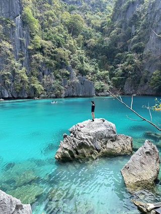 之所以叫双子泻湖,是因为被山隔开成两个湖,而这两座山之间只有一个2米长的岩洞相连。岩洞的顶端只高出海面20公分,想要从一池游到另一池,必须得从这个岩洞下面游过去,或从搭建的梯子爬过去。从船上可以直接下水游泳和浮潜。