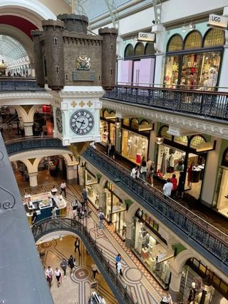 布洛克拱廊始建于1891年,是到目前为止保存比较完好的始于19世纪的一条购物长廊。这条拱廊的设计灵感来源于意大利米兰的Vittorio长廊,马赛克瓷砖地面配以大理石圆柱,两侧均安装了维多利亚时的窗棂。1.墨尔本的购物商场:布洛克拱廊作为墨尔本的购物商场,云集了全市多数时尚、珠宝礼品、皮具、手工玩具、鞋类及化妆品专卖店,让每一个热爱购物的人流连忘返。2.历史韵味:在逛街之余,这座精致、典雅的拱廊式建筑本身也值得细细品味,这个有着100多年历史的建筑,目前已被列为受澳大利亚国民信托保护的文物建筑。历史和时尚的感觉就这样交融在一起,穿梭其间有一种很奇妙的体验。
