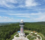 阿尔山国家森林公园镶嵌在碧波浩瀚的大兴安岭林海中,公园内有大兴安岭主高峰——特尔美山(海拔1378米)和大兴安岭较大的湖泊——达尔滨湖,更有火山爆发时熔岩流淌凝成的石塘林和天池。其矿泉资源得天独厚,被称为“天下奇泉”。