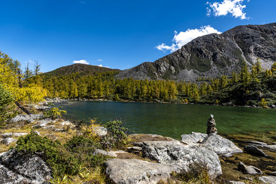 "山峰环绕,景色绚丽多姿"
