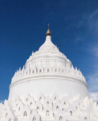 欣毕梅佛塔是一座有着波状台阶的白色佛塔建筑,从远处看好似一个奶油大蛋糕。这座佛塔根据占星术而建,按当地人的说法,这里便是世界中心。佛塔设计为巨大的白色圆形,拥有7个半圆的平台,其护栏为波浪拱形,象征了围绕世界中心的七座大山和海洋。宝塔的较高处为圣坛。