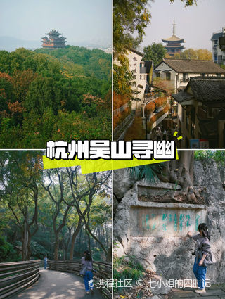 吴山和宝石山相似,是西湖边适合休闲锻炼的小山。吴山的海拔不高,却自古便是揽胜的好地方,登上城隍阁远眺,西湖、钱塘、杭城景色尽收眼底,颇有凌空超越之感,“吴山天风”也由此得名。吴山概况吴山景区分为四部分:收费的城隍阁景区,以及免费的伍公山、阮公祠、三茅观景区,从清河坊街起,自北向南连接紫阳山、云居山直至万松岭路。如果你到清河坊街步行街游玩,一定不会错过旁边吴山广场上被绿色植物环绕的“吴山天风”石刻,这也是景区的标志。上山的路很多,游人较常走的是清河坊街周边的入口。如果从粮道山路上去,可以开车也可以步行,会路过杭州博物馆(免费),能看到不少杭州老照片。若是步行,更推荐的是从清河坊街里的大井巷上山,沿路景色更好。从吴山广场往清河坊街走,第一个路口往右就是大井巷,从这里的登山石阶上山,过环翠楼来到东岳庙,正殿前的两根“盘龙柱”是明代的遗物,十分珍贵。更值得一提的是,这里也是吴山热闹的地方,有许多戏台和茶座,在这儿喝茶听戏感觉很不错。登城隍阁赏景从东岳庙沿着山道往上走,大约10分钟来到吴山的建筑城隍阁,白天天气晴好时登楼远眺,景色是整个吴山的大卖点,若是晚上登楼,则可看杭州夜景。城隍阁三楼的茶室可以观景喝茶,价格公道,而出口处的十二生肖石也很有趣,虽然乍一看就是地上的一堆石头,颇为抽象,但游人到这儿总要试着找找自己的属相。山中隐秘之地十二生肖石可以说是游玩吴山的中转站,如果时间紧张,可以返回城隍阁入口处的盘山公路,由此返回吴山广场。如果循着十二生肖石对面的指示牌往青衣洞方向走,越往里游人越少,怪石越多。青衣洞往下,过阮公祠,可到达刻着“岁寒松竹”的感花岩,如果你仔细找,可以在瑞石古洞石林看到喀斯特地貌以及洞内的名人题刻。旧时这里寺庙林立,如今仍有许多信徒在怪石中摆放各种供像,可谓山中一景。宝成寺也在附近,里面的麻曷葛剌造像不仅精美,而且十分珍贵。另外,不远处的茅山道士修炼地三茅观遗址、泼水观音也值得一看。若是想要多走走山路,可从十二生肖石一路往南,走到万松岭路的云居山革命烈士纪念碑,对面就是万松书院,步行全程大约40分钟。虽然一路上有许多指示牌,但山岔路较多,比较容易迷路。如果打算深度游,建议预留半天的时间,爬过山后,可去到西湖边看景,或者回到清河坊街吃东西、淘点小玩意送亲友。