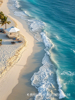 坎昆海滩位于墨西哥尤卡坦半岛东北端,被誉为“加勒比海的蓝宝石”,是全球知名的海滨度假胜地之一。这片长约22公里的新月形海岸线,以细腻如糖的白沙和清澈分层的海水闻名,从浅绿到深蓝的渐变色调宛如天然调色盘,吸引着无数游客前来打卡。