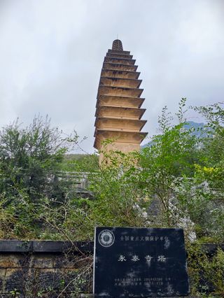 永泰寺创建于北魏正光二年(公元521年),距今已有1400多年。历史上曾有北魏文成帝之女转运公主、南朝梁武帝之女明练公主(禅宗尼僧鼻祖)、北魏孝明帝之妹永泰公主三位公主在永泰寺出家修行。该寺是佛教禅宗传入中国后修建的第一座尼僧寺院,也是我国现存年代早的一家皇家尼僧佛寺,被称为佛教禅宗尼僧祖庭。永泰寺现存建筑共分五进山门、天王殿、中佛殿、大雄宝殿、皇姑楼,厢房有伽蓝殿、六祖殿等。在寺院后山坡上有:唐永泰寺塔,金代均庵主塔,明代肃然,无为普同之塔,这些古塔,造形优美,秀丽挺拔。寺内散存有唐代以来的碑碣、石雕等40余品,雕工精细,书法流畅。古树名木有被称为“佛门旗杆”的大杨树,单株结果的银杏树,和《少林寺》电影中,放羊女放羊场地的一棵“牧羊女树”。寺中还有棵已经两千年“娑罗树”,是于东汉8年由印度高僧摄摩腾、竺法兰用钵带至中国的贡品。起初栽于白马寺,后移植永泰寺,在永泰寺已有1500年了。它也是中印文化交流的活见证。唐塔位于寺院后东北约120米处山的山坡上,具有典型的盛唐时期建筑风格。塔系唐代单层密檐式砖塔,呈明显的抛物线形,柔和优美。塔的上部是由仰莲、五重相轮等组成的宝刹,其精致的造型,是我国现存为数不多的唐塔塔刹中的佼佼者。