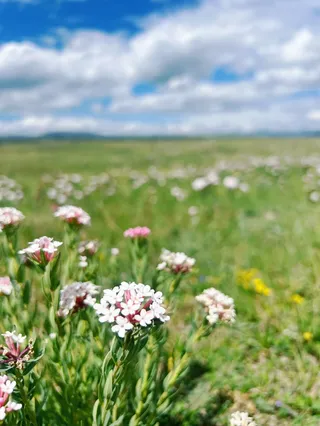 金银滩草原位于青海海北藏族自治州海晏县西海镇西北侧,分为金滩和银滩,平均海拔3200米。得名金银滩草原主要是由于草原上河水两边一边开着白色小花,一边是金色花朵,十分漂亮。西部歌王王洛宾来此采风时创作了歌曲《在那遥远的地方》,金银滩草原也由此名扬天下。