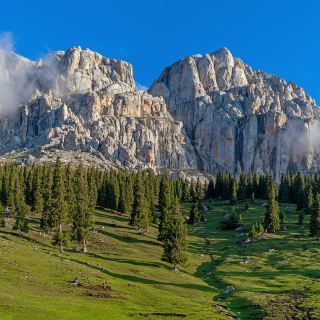 乌孙山又名帖木里克山、阿拉喀尔山,海拔2000-3500米,是察布查尔锡伯自治县和特克斯、昭苏二县的界山。山峰西侧,从海拔1100米的低山丘陵过渡到海拔3000米的高中山地带,地形复杂,是有名的琼博乐森林公园。山谷中是野花铺满的牧场,栖息着很多珍贵的鸟类和动物,在这里能看到数量繁多的原鸽。