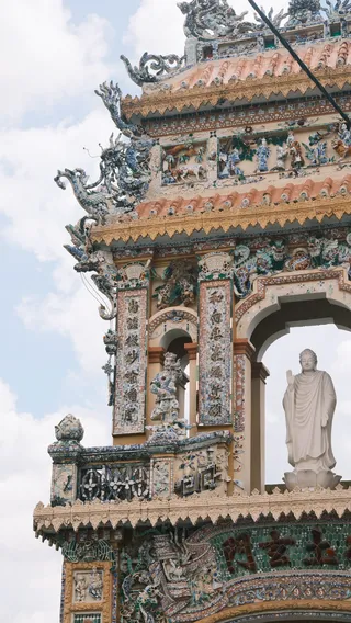 永长寺建于19世纪初,距今已有100多年的历史,在距离西贡不远的美拖市。永长寺是当地的寺庙之一,在寺内供有数百年高僧的肉身。除此之外,在殿堂里也供奉佛像,在院子里也供奉着弥勒和观音的巨型塑像。