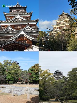 广岛城位于太田川的三角洲的平地上,因为它的外观像一只黑鲤鱼,又名"鲤城",由名将毛利辉元于1589年开始修建,历经10年建成。这座美丽的城堡在1945年的原子弹爆炸中被完全摧毁。现在的城堡是1958年仿照原样重建而成的,站在城顶可以俯瞰周围的城景 。广岛城除了展览历史的美术工艺品,也是一个著名的赏樱地,每到春季就会吸引许多赏樱的游客到访。