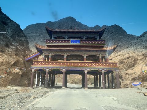 "依山而建的藏传红教寺庙"