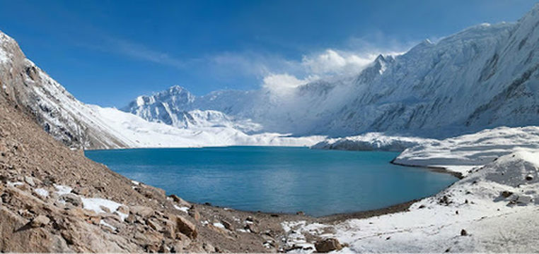 "全程在雪山的环抱中徒步"