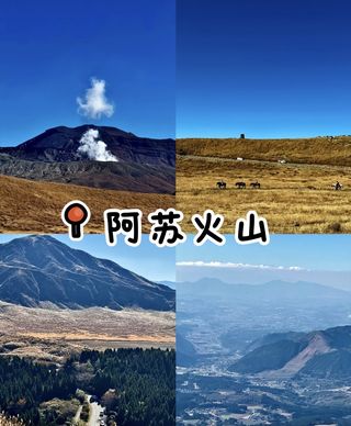 阿苏山是九州熊本县有名的活火山,直径超过25公里,有着当今世界上较大的火山口。火山口耸立着阿苏五岳,即根子岳、高岳、中岳、乌帽子岳、杵岛岳,其中中岳至今仍有频繁的火山活动,景致十分壮观。