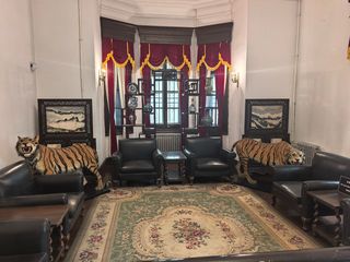 张氏帅府-大青楼是张氏帅府的标志性建筑,建于1918-1922年,为仿罗马式建筑,因该楼采用青砖建造,故称张氏帅府-大青楼。张氏帅府-大青楼高37米,是当时奉天城的高点之一。整体建筑富丽堂皇,外部立体浮雕造型生动、工艺精湛,内部主要房间的壁画装饰技艺独特,具有较高艺术价值。张氏帅府-大青楼融办公与居住为一体,作为张作霖、张学良父子两代主政东北时期的重要办公场所,曾历经两次直奉大战、东北易帜、处决杨、常、武装调停中原大战等重大历史事件。这里的老虎厅不得不提,一对猛虎(标本)昂然并立,“老虎”原是部属汤玉麟送给“东北王”张作霖的,是当时处决杨宇霆与常荫槐的地方,因厅内有虎而得名。当时的一只老虎标本现在保存在沈阳同泽中学的校内,另一只因为没有保管好已无有踪迹了。这里蕴藏着丰富的历史内涵,是东北近现代历史的见证和缩影。