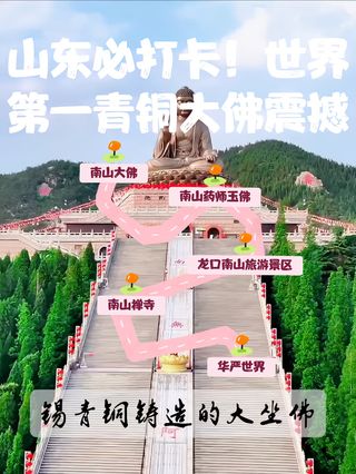 龙口南山旅游景区为国家5A级旅游景区,分为宗教文化园、历史文化园两大部分。其中景区内南山禅寺、香水庵等为晋、唐遗迹,石泉寺(今南山禅寺)有“黄县三观八寺之首”的美誉,在此之上修复重建的南山各处名胜,可谓圣地重光。南山大佛和南山药师玉佛更为千年古刹再添新颜,打造了一处祈福圣地;以历史文化为经、吉祥文化为纬,按朝代顺序建设的历史文化园,融中华上下五千年建筑美学、历史文化、吉祥文化、民族文化和园林艺术于一体,宛如一部鲜活的中国通史,全面展现了中华文明多姿多彩,是青少年研学旅行、校外教育、亲子体验、社会实践、户外拓展的理想之地。打造了“福寿南山。