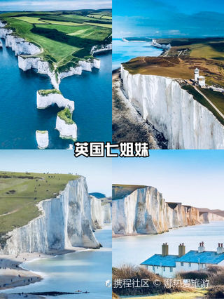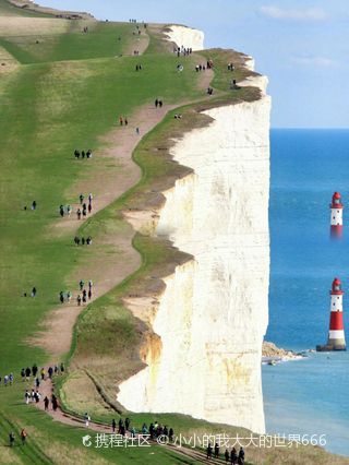 七姐妹国家公园紧临英吉利海峡,如此独特的名字源于这里主要的景观——七座相连的白垩断崖(White Cliffs)。这处断崖绵延起伏数公里,约170米高的悬崖峭壁和海滩近乎垂直,令人心中生起万分敬畏。而纯白色的崖体和崖上翠绿的草地互相映衬,也构成了令人惊叹的景观。