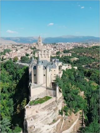 塞哥维亚城堡是塞戈维亚一座造型独特的石砌城堡,三面悬崖,只有通过吊桥才可进入。这座城堡开始只是一个堡垒,后被用作王宫、监狱和军事学院。蓝色的屋顶和城堡造型非常梦幻,相传是迪斯尼“白雪公主城堡”的原型。