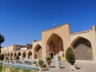 这是法维王朝重要的王宫之一,建成于1647年。王宫内保留了多幅珍贵历史油画及各种文物。因殿前长方形水池旁在二十根松木巨柱及它们在水池中的倒影而得名四十柱宫。二十柱倒影成四十柱的景色,并非「十全十美」,亦非旅游小册子所写的「奇观」,不过,顺道一游还是值得的。宫内的墙上四周是精美的壁画,反映的是萨法维日常生活等情景,还有伊朗难得一见的女性形象。此外,宫殿东北角回廊里的小型壁画也是萨法维时代的精品,不容错过!1706年的一场大火几乎将宫殿全部毁坏,现在人们看到的是火灾后重建的宫殿。