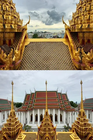 王孙寺是泰国曼谷拍那空县的一座重要寺庙,由拉玛三世国王于1846年下令建造,献给他心爱的孙女索玛娜公主,因此得名"王孙寺"。寺庙的整体布局遵循传统泰国寺院的设计原则,但融入了更多皇家元素。主殿采用典型的泰国寺庙风格,装饰华丽,屋顶线条优雅上翘,饰以精美的彩色玻璃和金色马赛克,这种独特的视觉效果使王孙寺在曼谷众多金碧辉煌的寺庙中显得格外与众不同。作为活跃的寺院,王孙寺至今仍履行着重要的宗教功能。寺庙内常有僧侣诵经修行,零星的游客和善信在此礼佛参拜。对于游客而言,参观王孙寺不仅可以欣赏到独特的建筑美学,还能深入了解泰国宗教文化和历史,无论是宗教信仰者还是历史爱好者,王孙寺都是探索曼谷文化不可错过的目的地。
