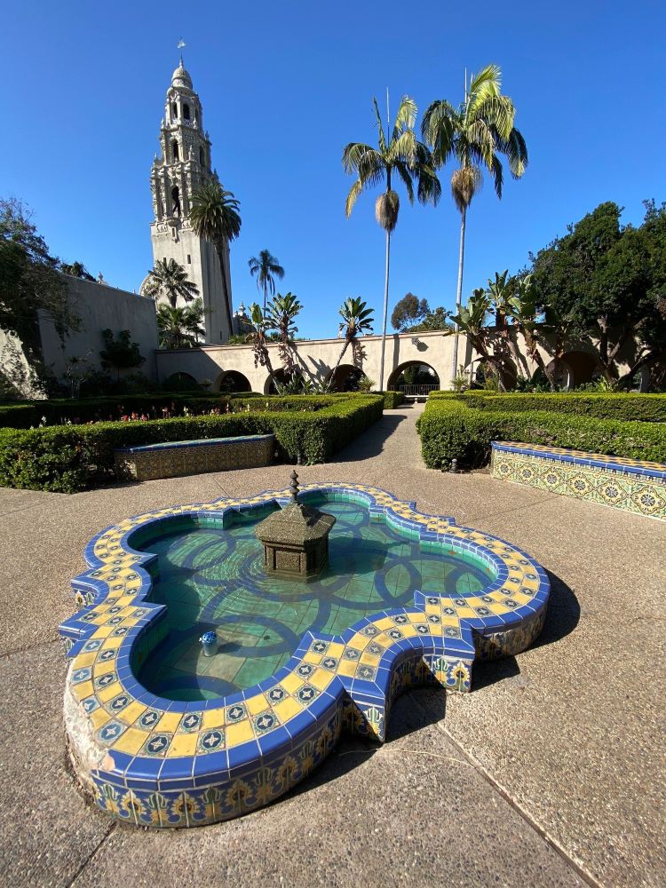 这座花园四周环绕着黄杨木树篱,以其华丽的喷泉、精美的绿松石、蓝色、黄色的瓷砖和阴凉的凉棚而闻名。